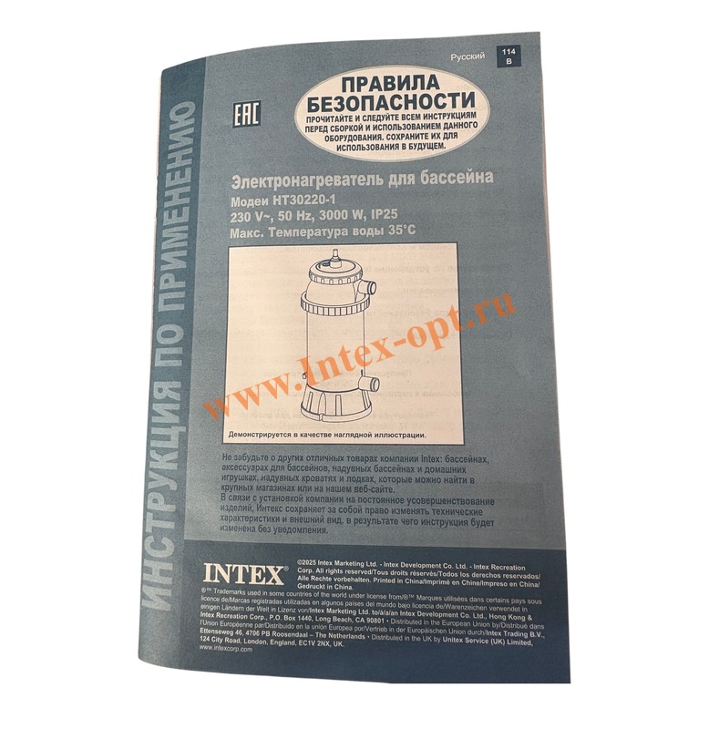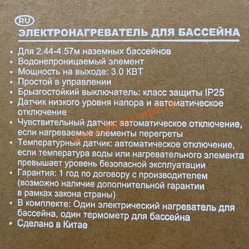 Электроводонагреватель для каркасных и надувных бассейнов Intex диаметром не более 457 см (емкостью до 17000 литров).