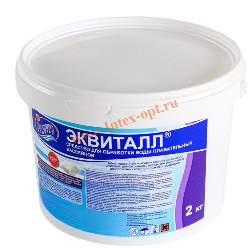 Эквиталл 2кг, картриджи, коагулянт для осветления мутной воды бассейнов
