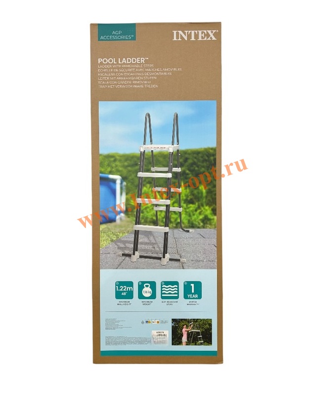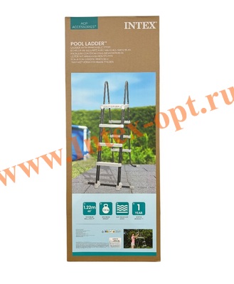 Лестница для бассейна предназначена для наземных бассейнов с высотой стенок 122 см.