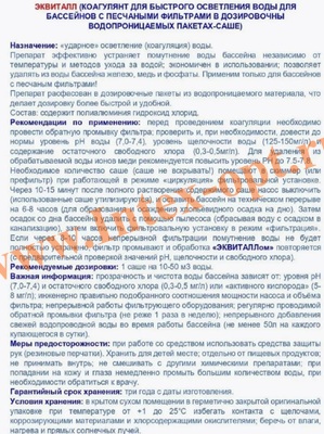 - Расход: 1 пакет на 10 - 50 m3 воды