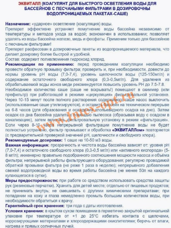 Эквиталл 2кг коагулянт, порошок для быстрого осветления воды для бассейнов