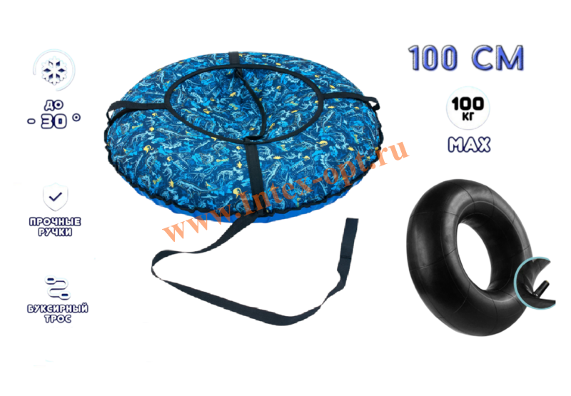 Диаметр тюбинга составляет 100 см, что позволяет комфортно разместиться ребенку и наслаждаться катанием.