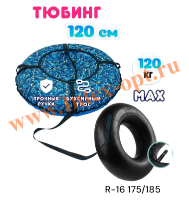 Диаметр тюбинга составляет 120 см, что позволяет комфортно разместиться как взрослому так и ребенку и наслаждаться катанием.