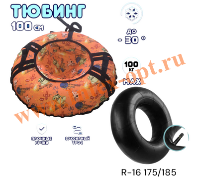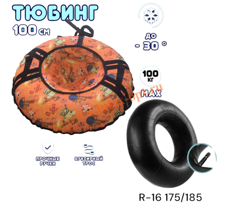 Диаметр тюбинга составляет 100 см, что позволяет комфортно разместиться ребенку и наслаждаться катанием.