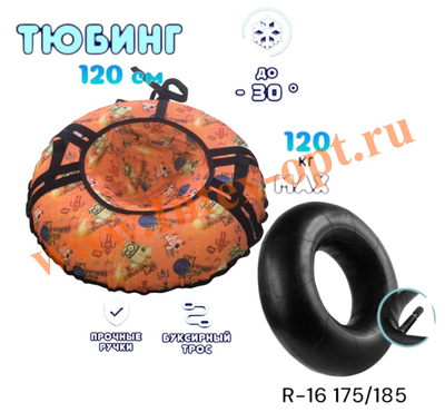 Диаметр тюбинга составляет 120 см, что позволяет комфортно разместиться ребенку и наслаждаться катанием.