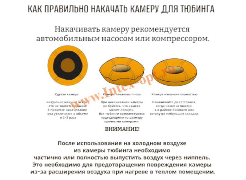 Размер камеры в спущенном состоянии значительно меньше (примерно в 2-3 раза) размеров самой ватрушки.