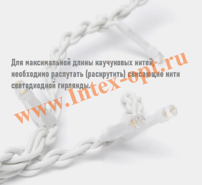 Для максимальной длины каучуковых нитей, необходимо распутать (раскрутить) свисающие нити светодиодной гирлянды.