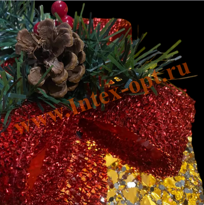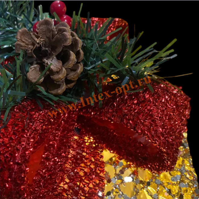 Фигура светодиодная с блестками, украшена съемными бантами, шишками, еловыми веточками и ягодами.
