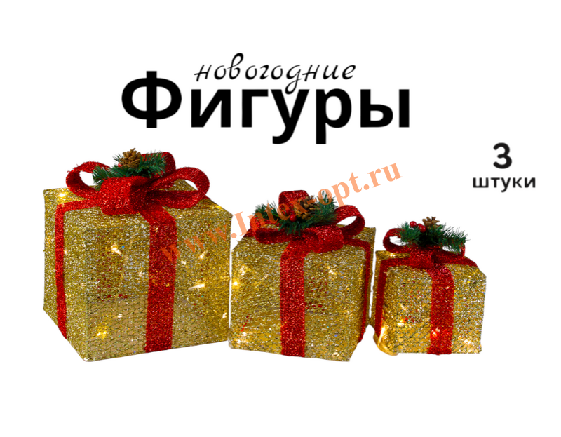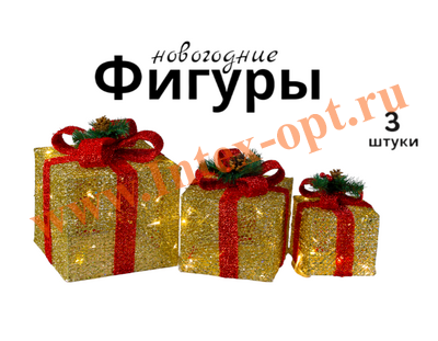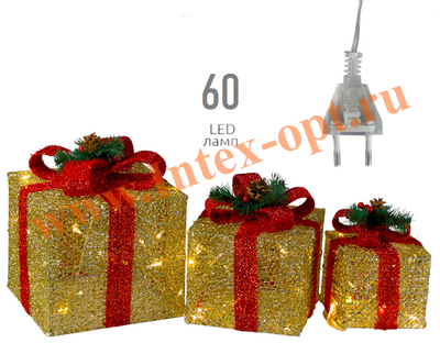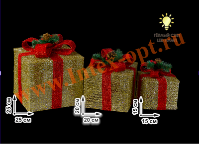 Все 3 подарка имеют 1 соединение гирляндой и используются как новогодняя композиция, разъединить подарки по 1 шт.- не получится.