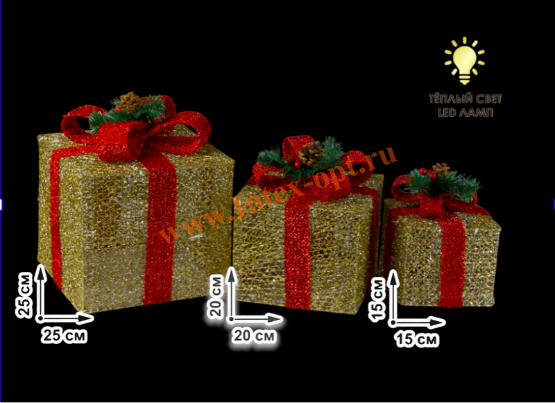 Светящиеся подарки под елку 25 см, 3 шт., золото