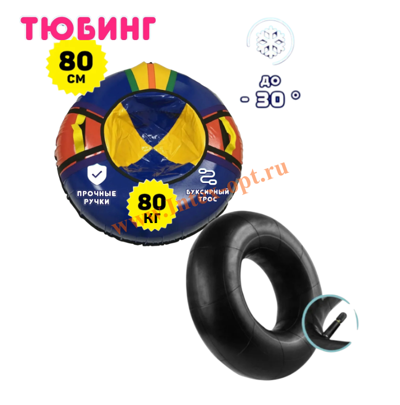 Диаметр тюбинга составляет 80 см, что позволяет комфортно разместиться ребенку и наслаждаться катанием.