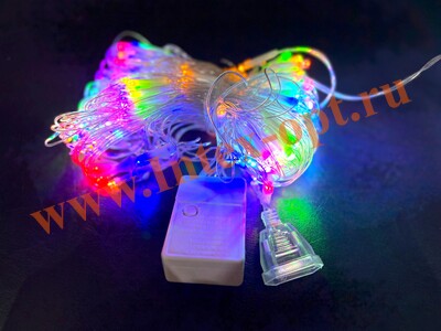 На одном конце электро - гирлянды находится сетевая вилка 220В, на другом коннектор для соединения с аналогичными гирляндами в одну цепочку, соединить можно до 4 шт., одновременно.