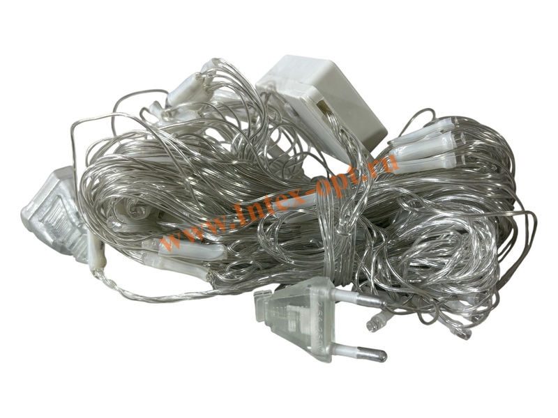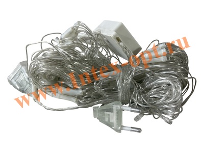 На одном конце электро - гирлянды находится сетевая вилка 220В, на другом коннектор для соединения с аналогичными гирляндами в одну цепочку, соединить можно до 4 шт., одновременно.