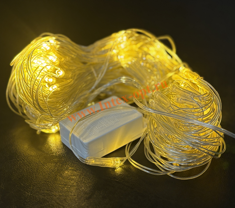 Светодиодная гирлянда сетка на окно 2х2 м, желтая теплая