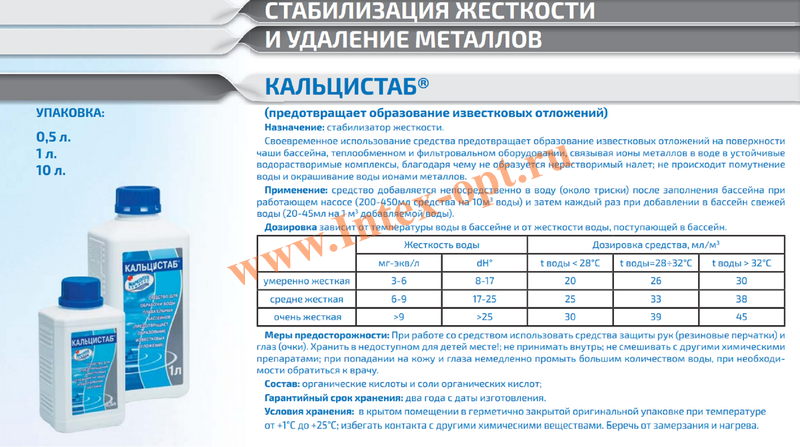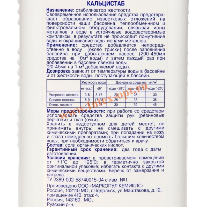 Кальцистаб 1л, стабилизация жесткости и удаление металлов из воды бассейна
