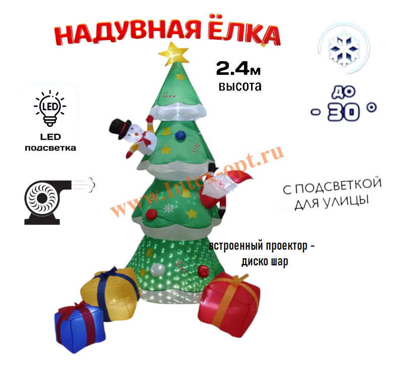 Надувная Елка новогодняя 240 см" Led подсветка - проектор