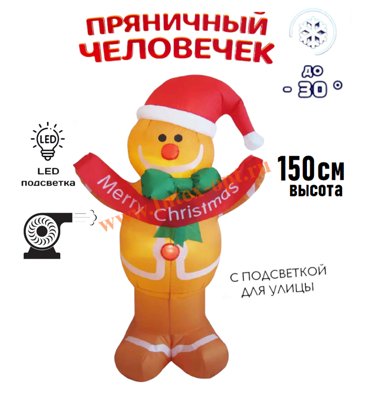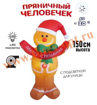 Надувной Пряничный человечек 150 см, Led подсветка