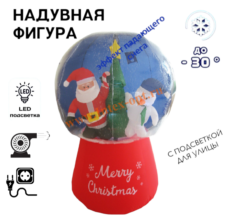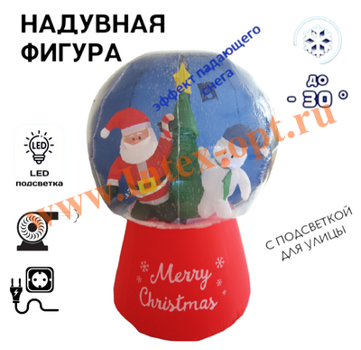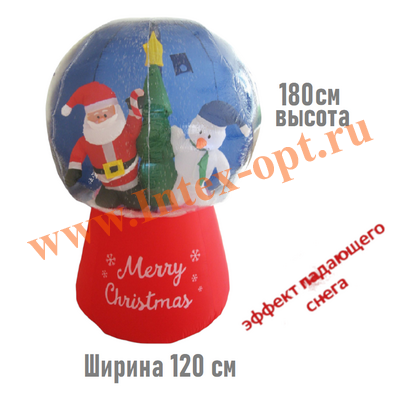 Надувная фигура "Шар новогодний" 180 см, Led подсветка, эффект снегопада