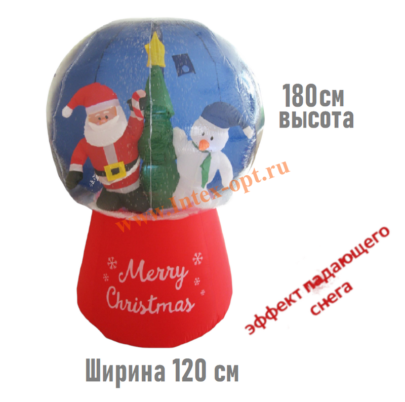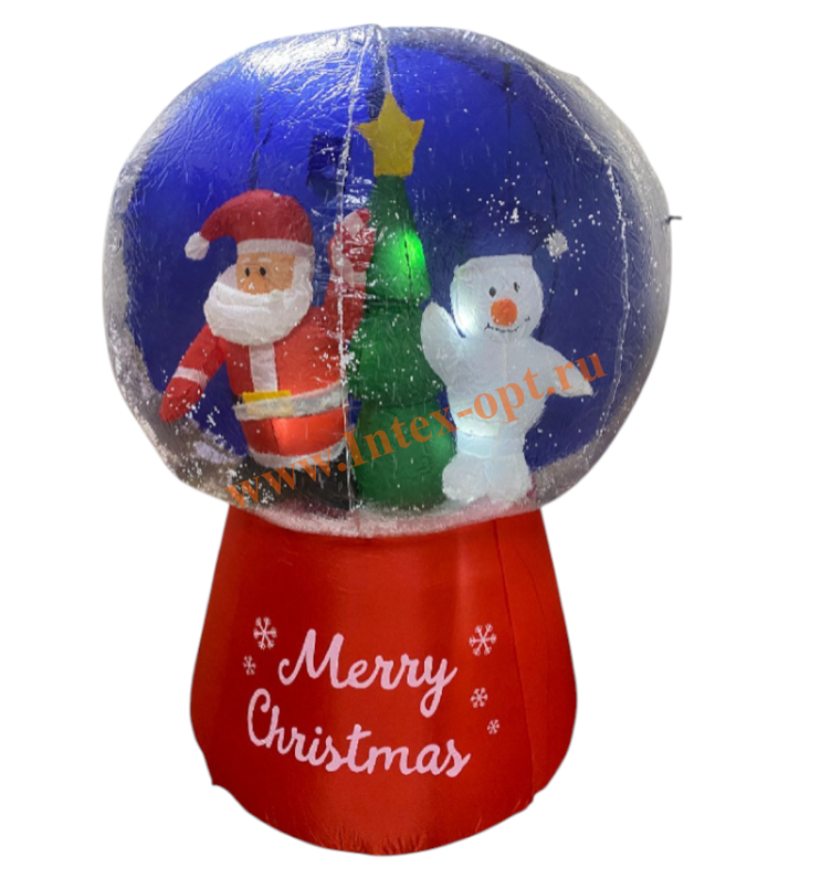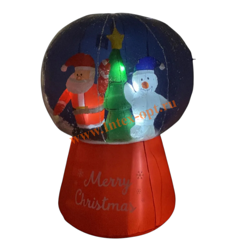 Несъемные фигуры внутри шара: надувной дед мороз, новогодний снеговик, надувная ель.