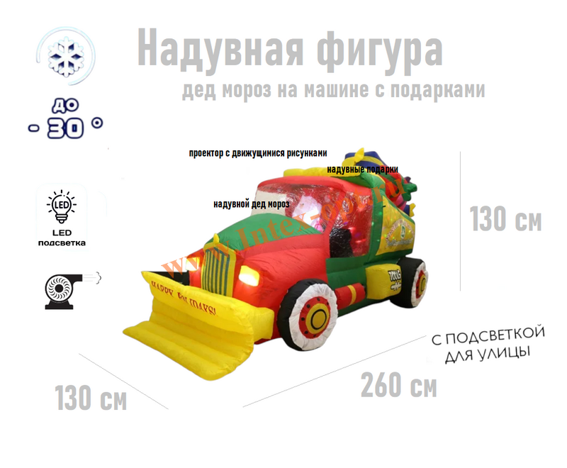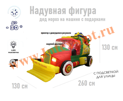 Надувная фигура новогодняя "Машина" LED подсветка - проектор