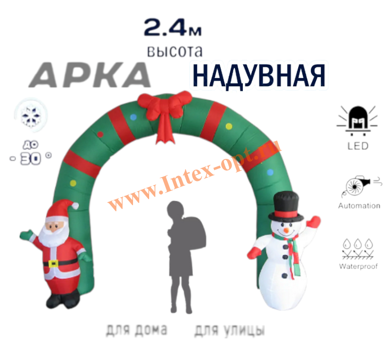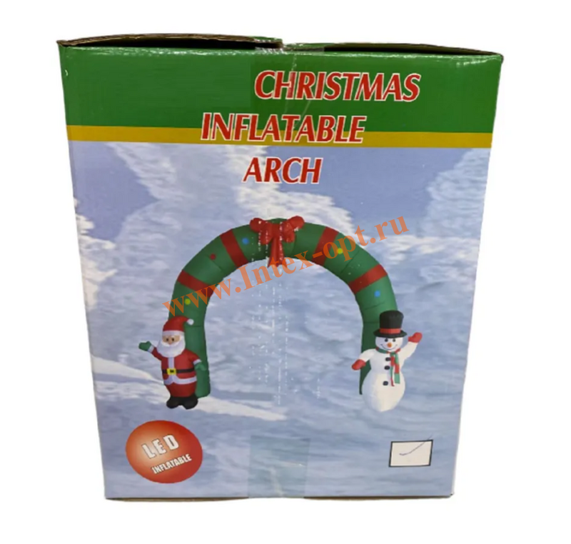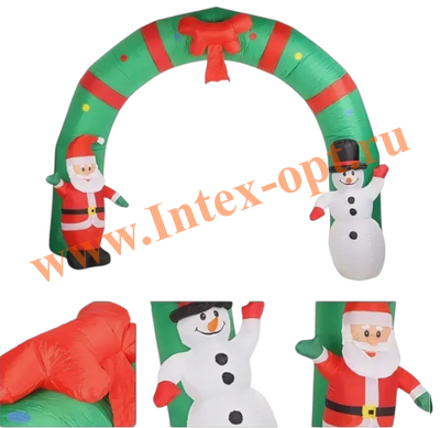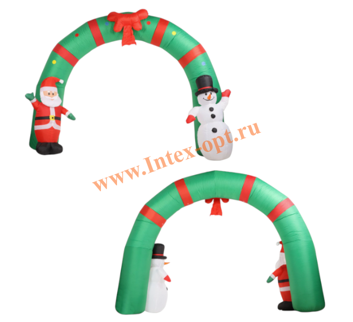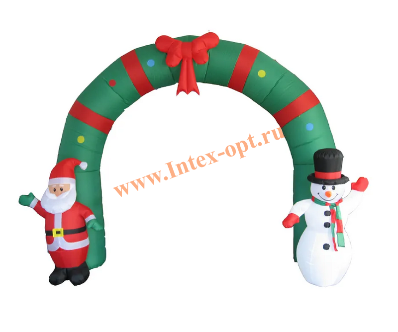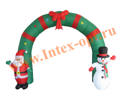 Фигура выполнена в стиле новогоднего декора с надувным снеговиком и дед морозом, арку украшает новогодний бант, что делает ее прекрасным дополнением к праздничной атмосфере (фигуры не съемные)