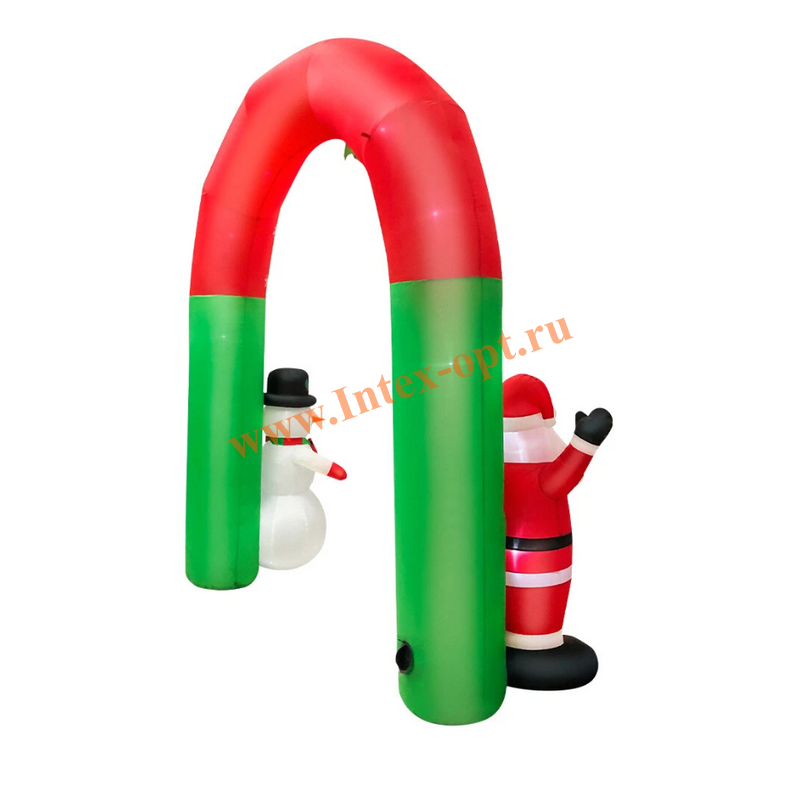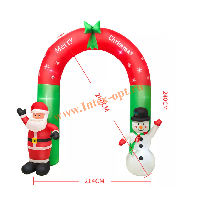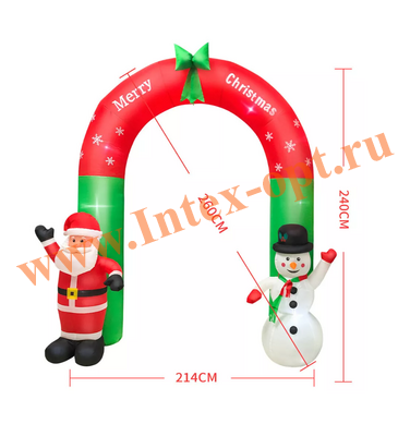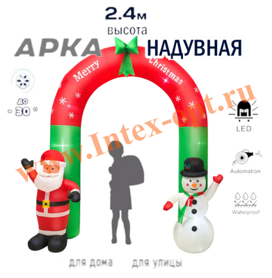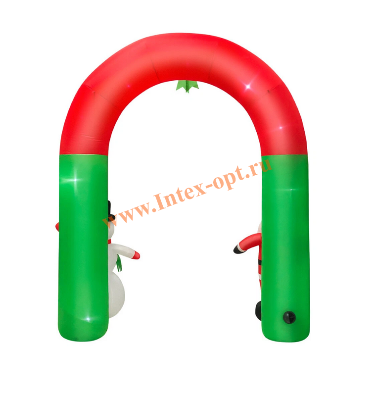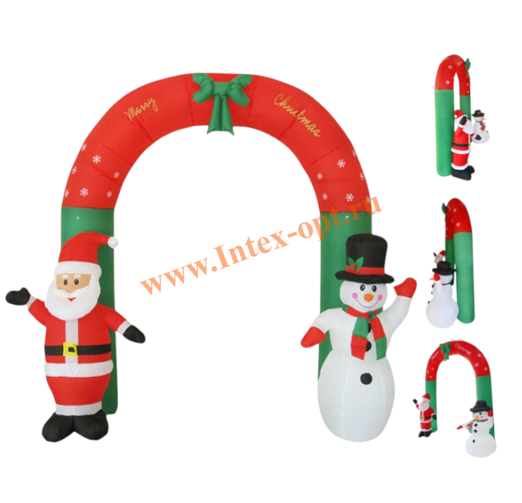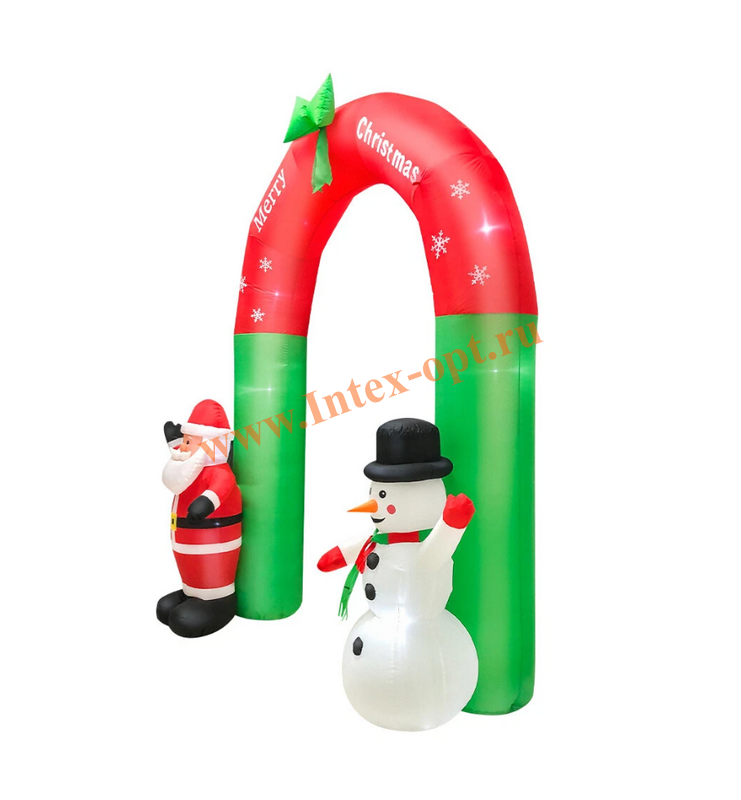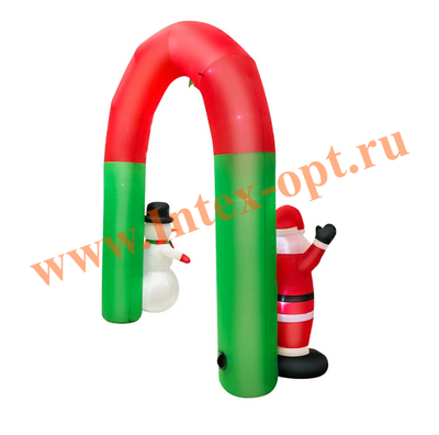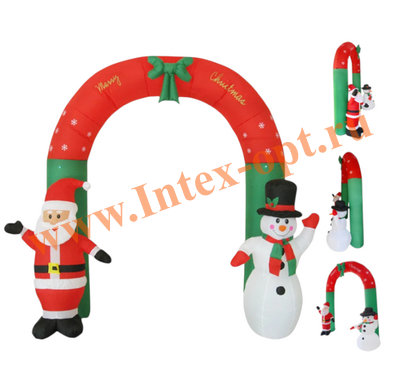 Фигура выполнена в стиле новогоднего декора с надувным снеговиком и дед морозом, арку украшает новогодний бант, что делает ее прекрасным дополнением к праздничной атмосфере (фигуры не съемные)