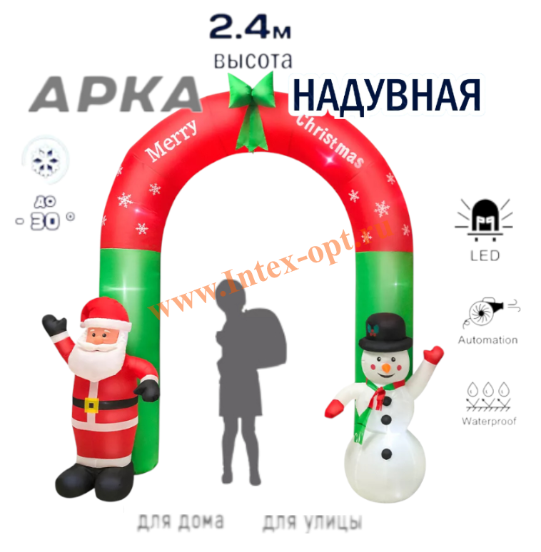 Надувная Фигура светодиодная «Арка Новогодняя 240 см» – это уникальное новогоднее украшение, которое добавит волшебства и сказочности в любое торжество.