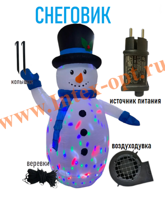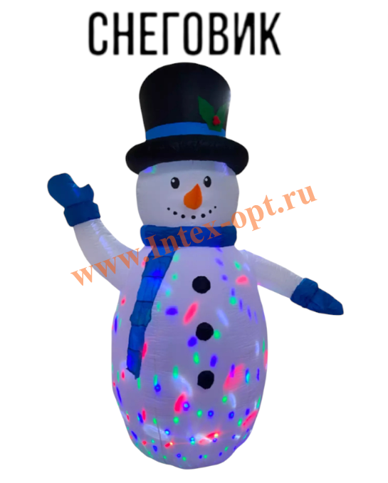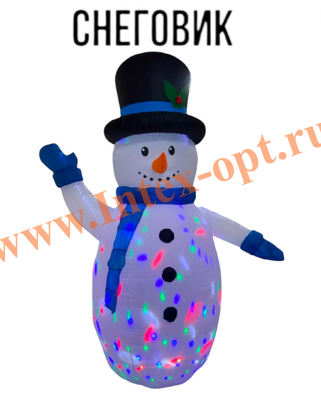 Бомбическая новогодняя надувная фигура снеговик, с Led подсветкой.