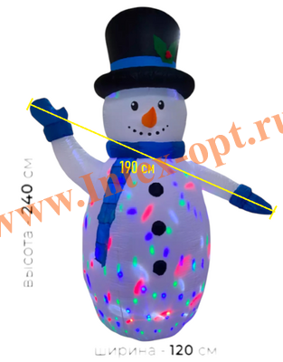 Надувная фигура снеговик 4D (240 см) Led подсветка - проектор