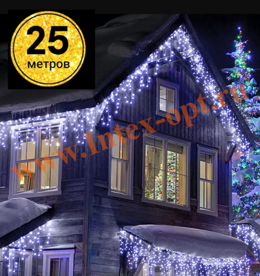Новогодняя гирлянда уличная бахрома 25 метров идеальна для украшения крыши, козырьков,