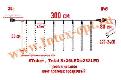 Коннектор: позволяет состыковывать до 4 шт., таких гирлянд и развесить их по крышам домов, фасадам зданий и перилам лестниц.