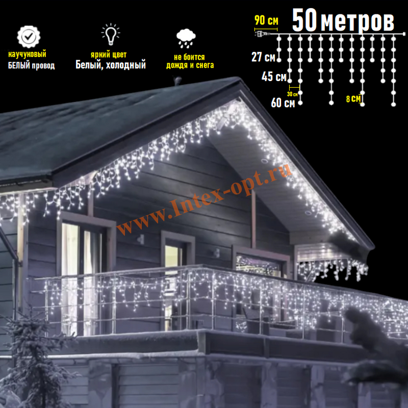 Уличная гирлянда бахрома 50 метров идеальна для украшения крыши, козырьков.