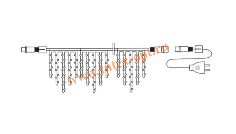 Комплектация: новогодняя гирлянда светодиодная бахрома - 1 шт., сетевой шнур 90 см, упаковка.