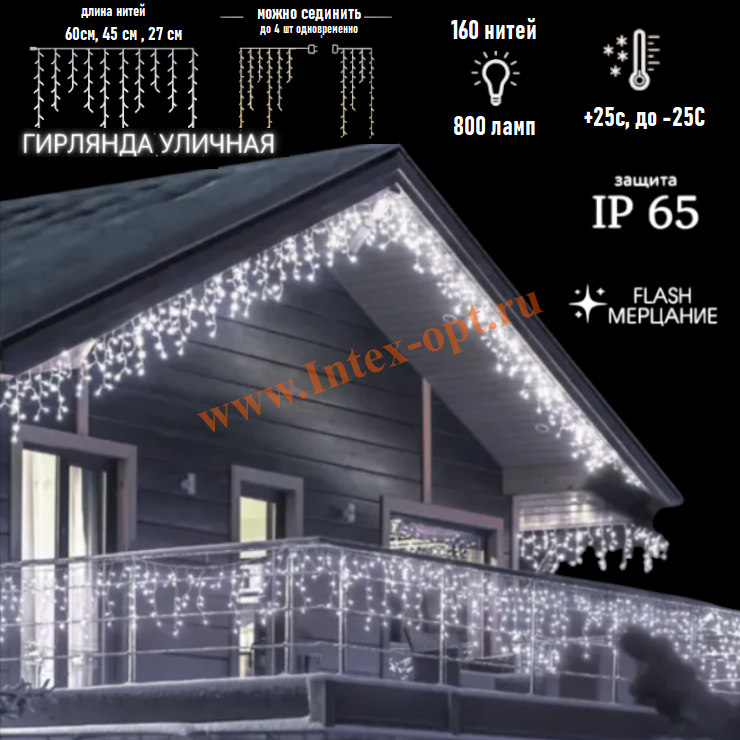 Высокое качество долговечной гирлянды и яркое мерцание светодиодов делают ее идеальным новогодним декором для улицы и дома.