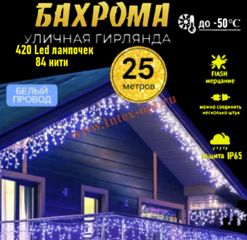 Новогодняя гирлянда уличная бахрома 25 метров идеальна для украшения крыши, козырьков,