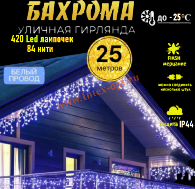 Новогодняя гирлянда уличная бахрома 25 метров идеальна для украшения крыши, козырьков,
