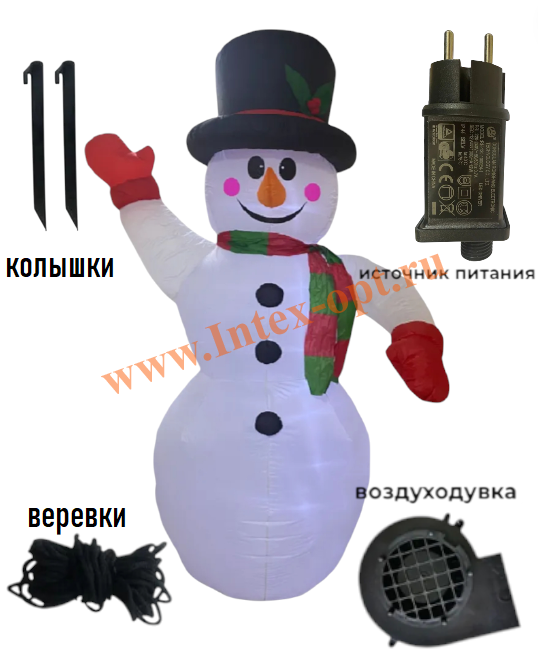 Комплектация: новогодняя надувная фигура, встроенный компрессор, LED подсветка, низковольтный адаптер.