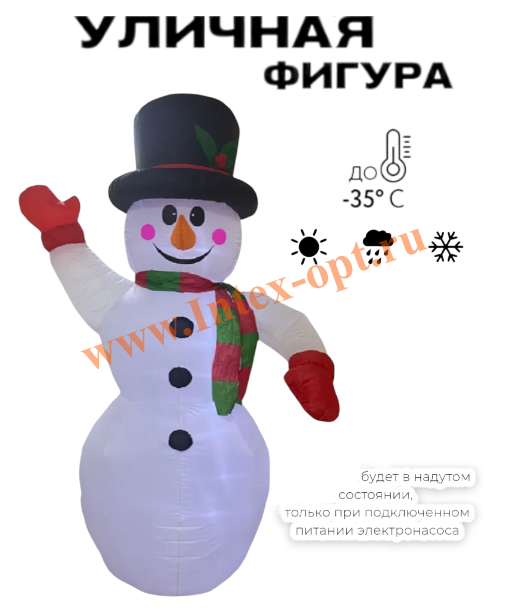 Новогодняя Фигура надувная "Снеговик" подойдет для размещения на улице, для дома, для офиса, на дачный участок, для оформления фотозоны.