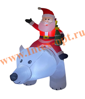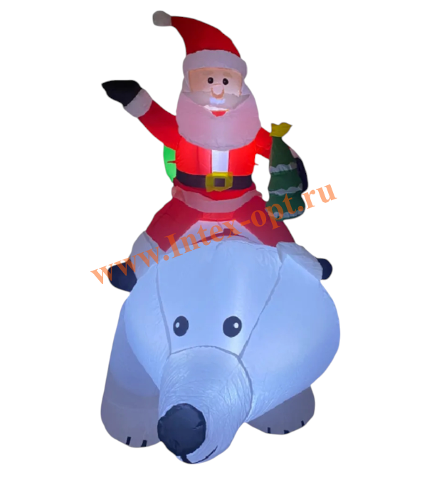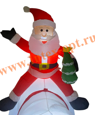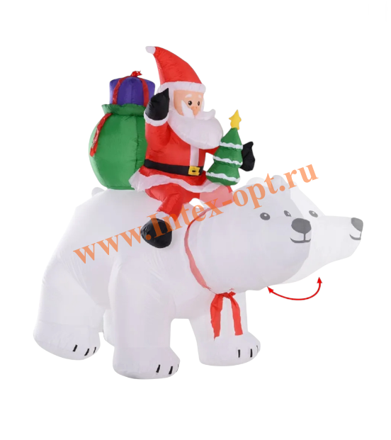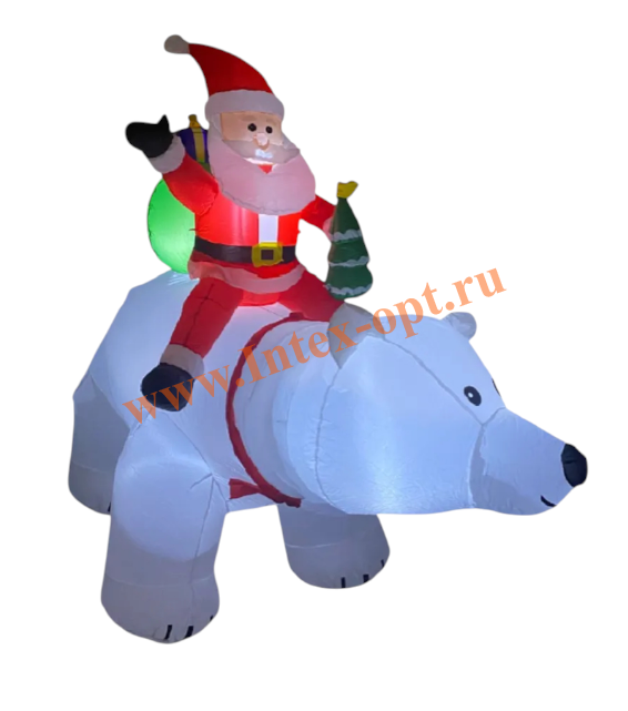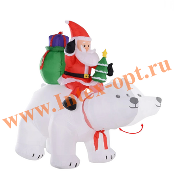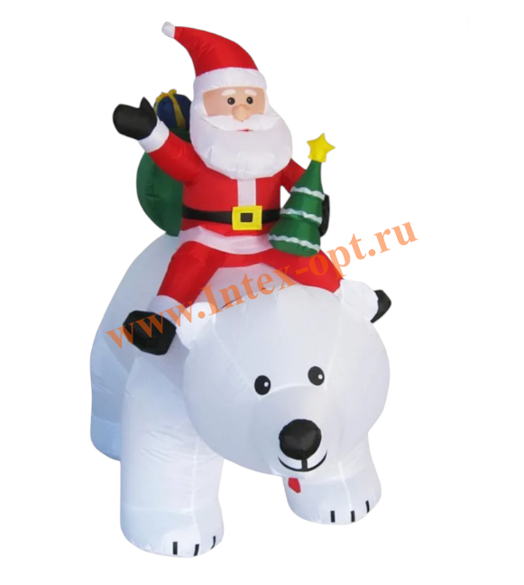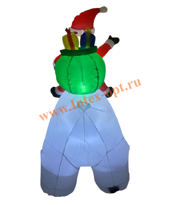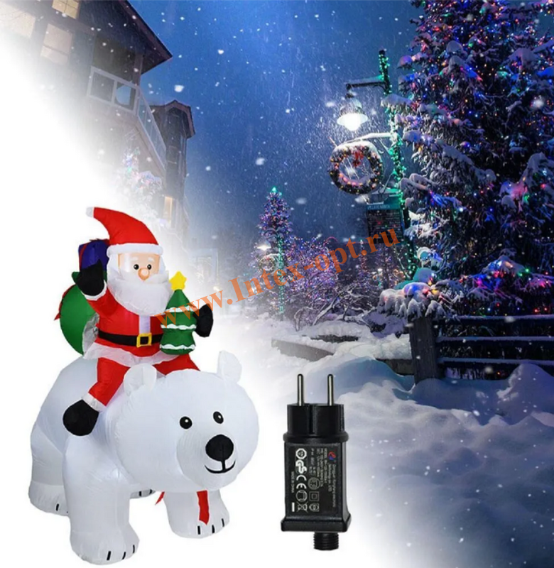 3D Уличная надувная фигура, Новогодний медвежонок "Умка" 210 см, на котором мчится Дед Мороз, с горой подарков, ну и конечно куда же без новогодней елки.