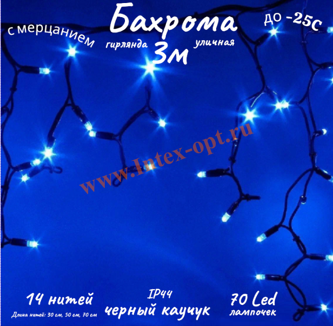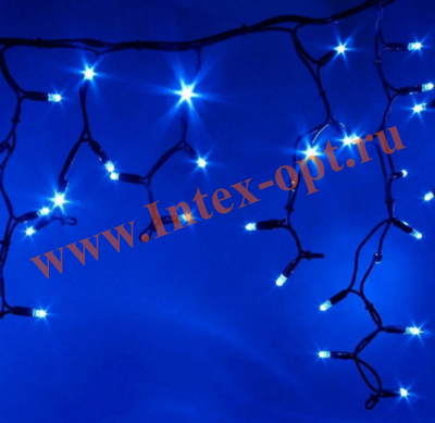 Гирлянда бахрома уличная 3 м, синяя с мерцанием, черный каучук IP44