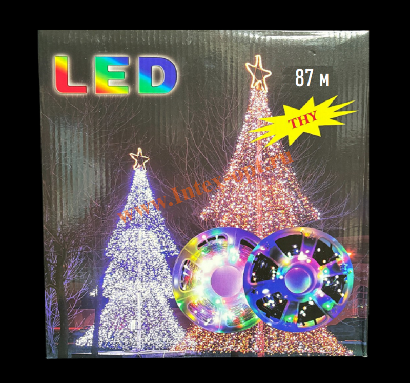 Гирлянда 398 Led лампочек обеспечивают яркий свет сравнимый с неоновым, шаг между диодами 22 см.