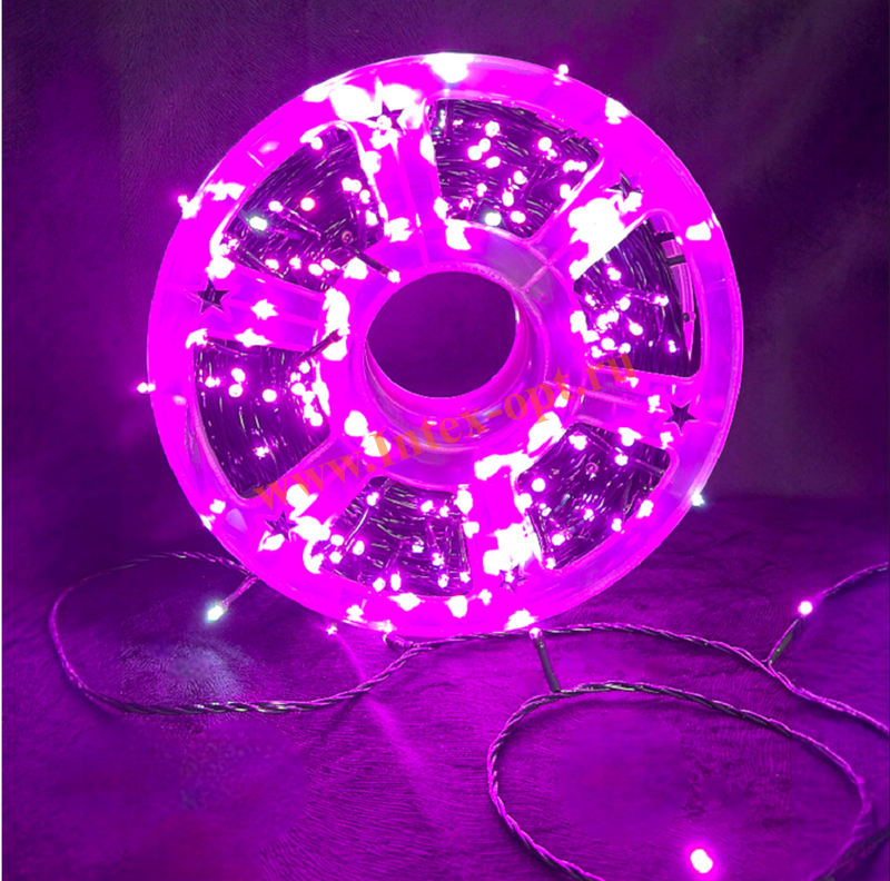 Гирлянда уличная 100 м, светодиодная нить малиновая с мерцанием, IP44