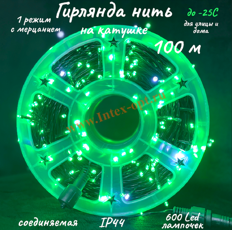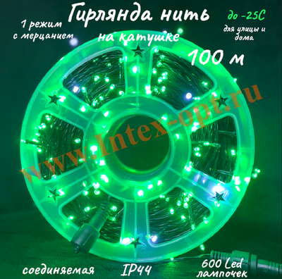 Гирлянда уличная 100 м, светодиодная нить зеленая с мерцанием, IP44