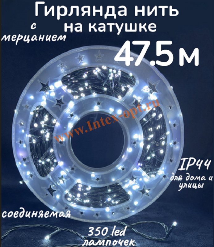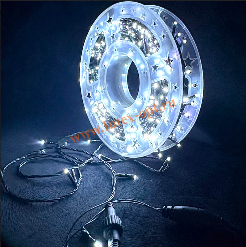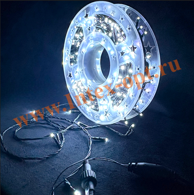 Гирлянда 350 Led лампочек обеспечивают яркий свет сравнимый с неоновым, шаг между диодами 14 см.
