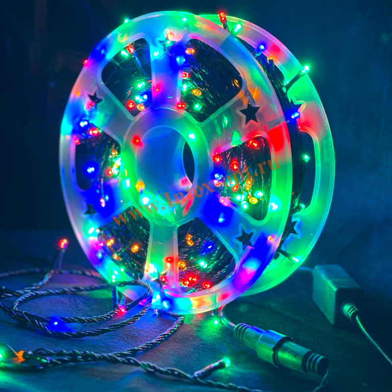 Гирлянда 350 Led лампочек обеспечивают яркий свет сравнимый с неоновым, шаг между диодами 14 см.