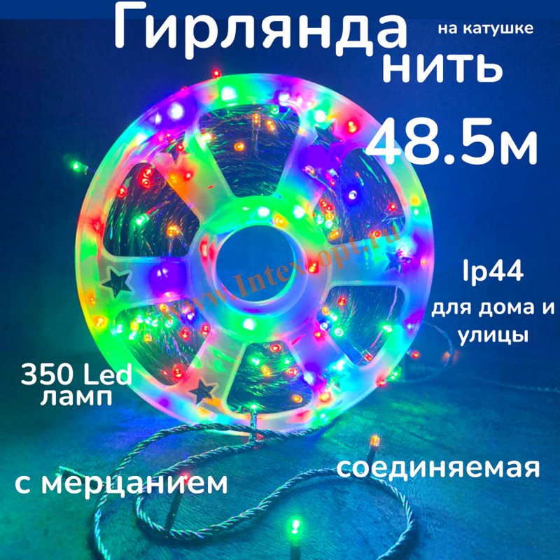Гирлянда уличная 48.5 м, светодиодная нить на катушке, цветная с мерцанием, IP44