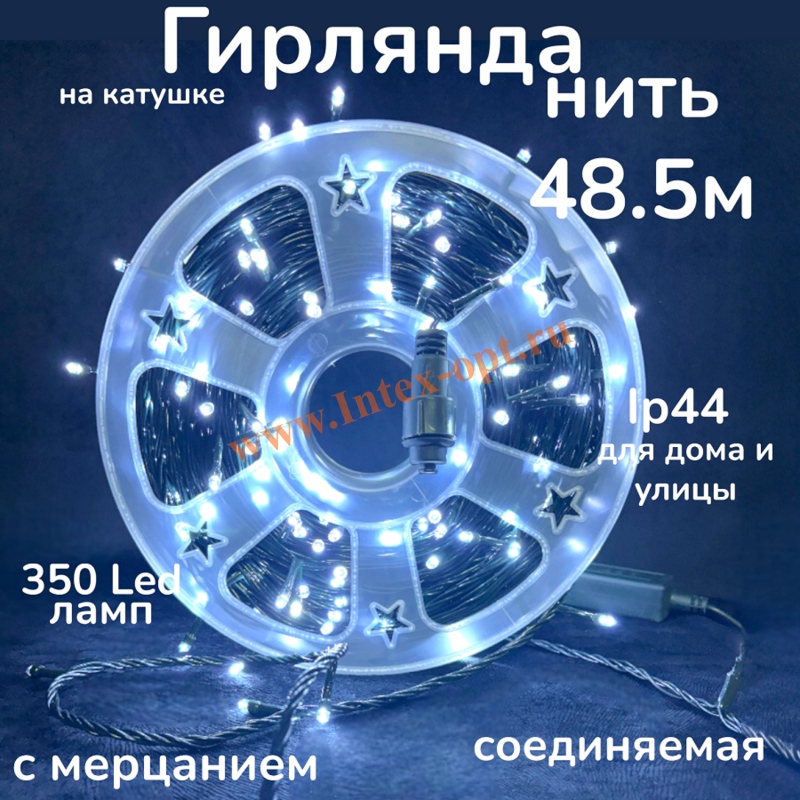 Гирлянда уличная 48.5 м, светодиодная нить на катушке, белая с мерцанием, IP44