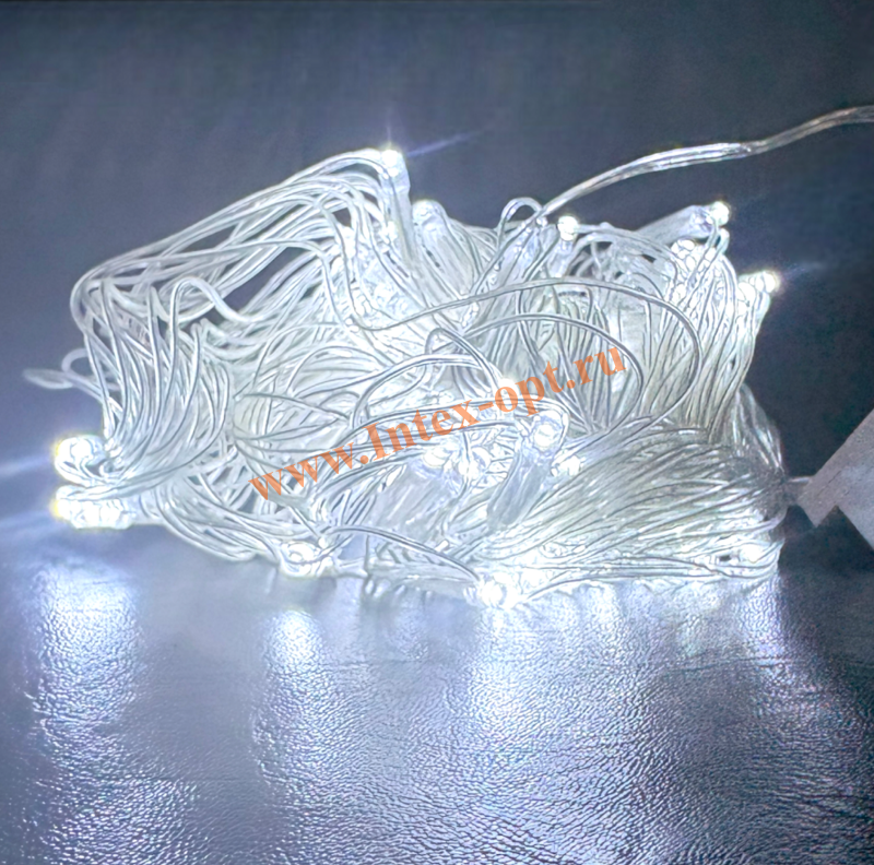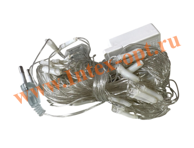 На одном конце электро - гирлянды находится сетевая вилка 220В, на другом коннектор для соединения с аналогичными гирляндами в одну цепочку, соединить можно до 4 шт., одновременно.