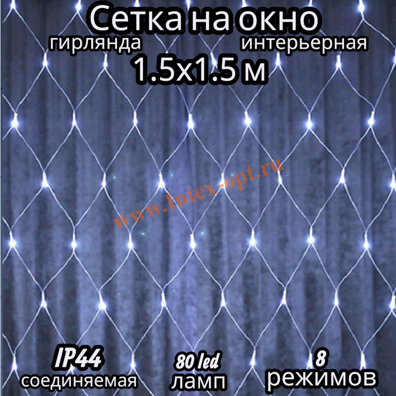 Новогодняя гирлянда сетка на окно 1.5 х 1.5 м, белый холодный