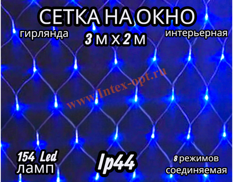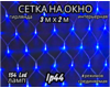 Светодиодная гирлянда сетка на окно 3х2 м, синяя
